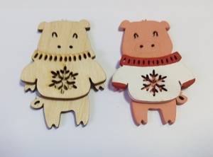 Фанерная фигурка для декора, 6,8х4,5см, Поросенок в свитере (арт. EB-LAZ-фиг-013)
