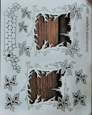 Размеры элементов: рамочки из веток и сосулек-10см, пуансеттии-2...5см, кусок снежной стены-9см.